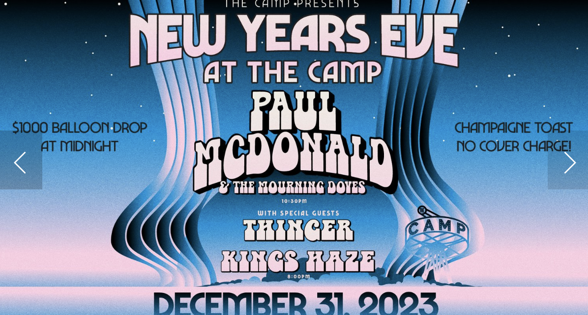 Live music including Thinger at 6:30, Kings Haze at 8:00, and Paul McDonald and The Mourning Doves at 10:30.
